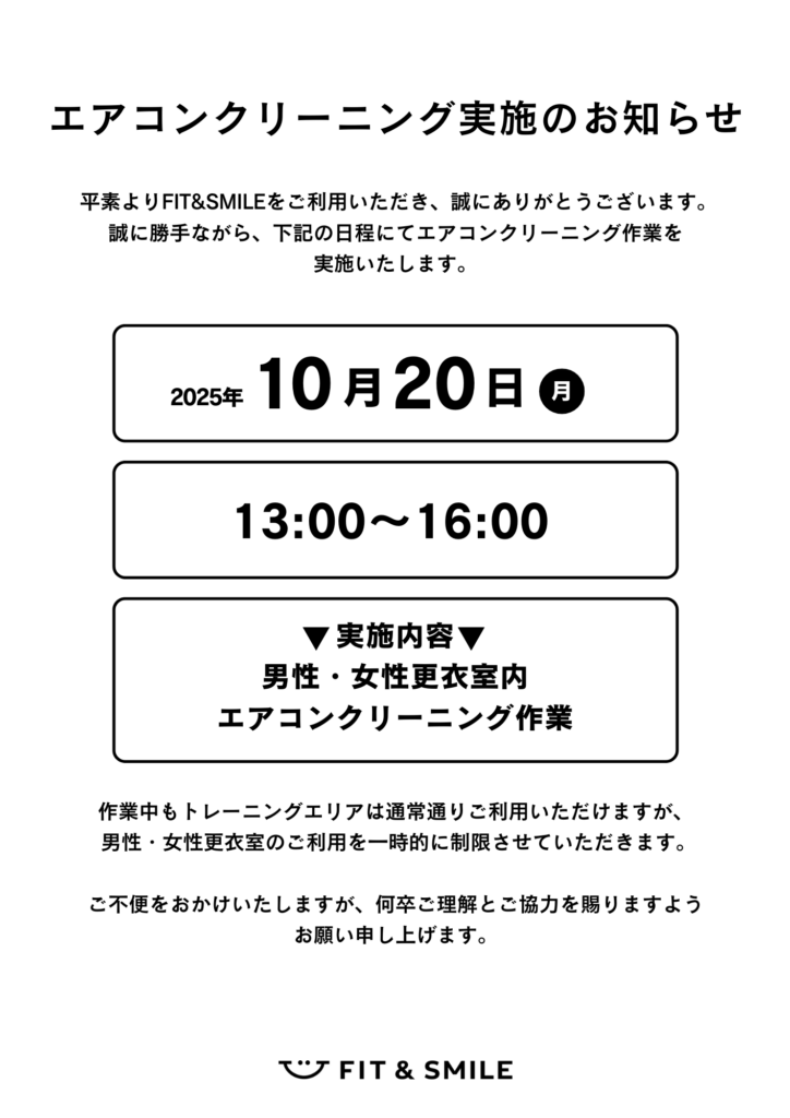 平素よりFIT&SMILEをご利用いただき、誠にありがとうございます。